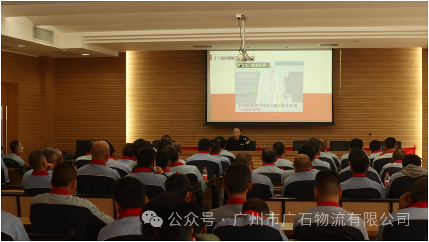 广州交警支队高速五大队的宋珊警官进行安全知识普及授课。宋珊警官有针对性地从安全带、安全变道、切忌疲劳驾驶、二次交通事故防范、切记高速慢行、拒绝酒驾这六个方面展开讲解。同时通过对大量经典事故案例进行分析,再从易犯交规讲述进行安全知识普及。提高了在场司机的安全行车意识和安全驾驶知识。在思想深处敲响安全警钟,牢固树立“安全出行观念”,遵守各项交通法规。