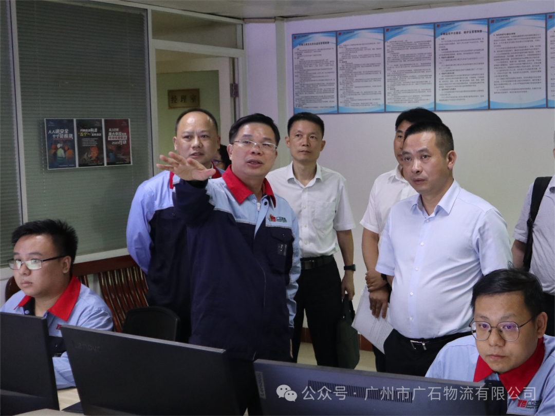 广石物流总经理詹前坤向化工物流总经理许高阳介绍监控中心