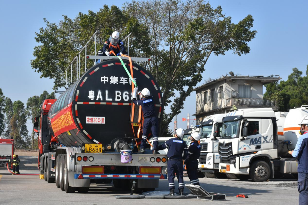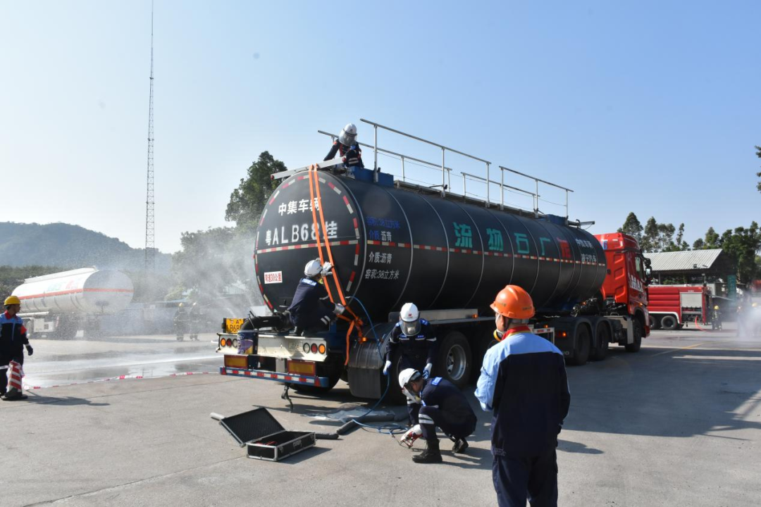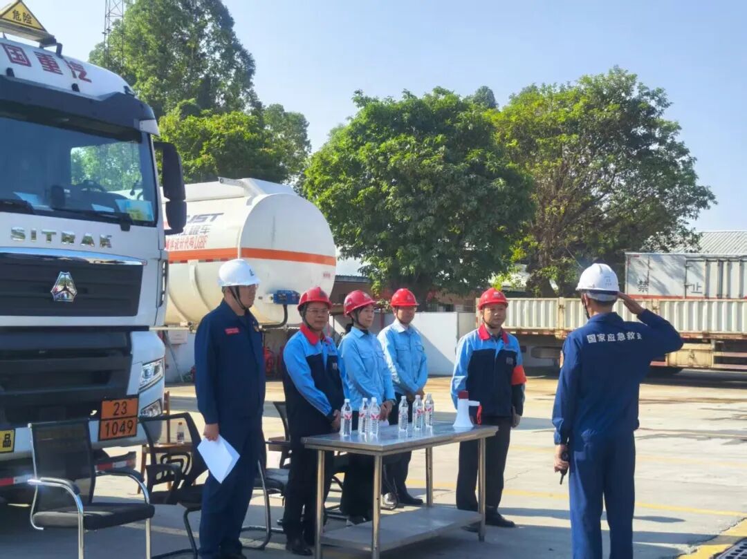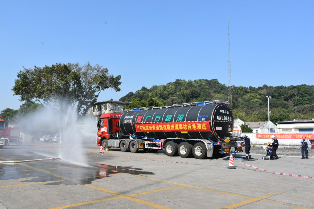 为了全面落实“安全第一,预防为主”的方针,秉持“贴近实战、以练为主”原则,通过组织全员应急救援演练与知识技能培训,着力提升物流从业人员在泄漏、火灾、交通事故等紧急情况下的快速响应、协同作战及有效处置能力。12月8日,广州市广石物流有限公司与国家危险化学品应急救援广州石化队联合组织开展“沥青道路运输泄漏事故应急演练”。公司领导詹前坤总经理、彭付强副总经理指挥本次演练,并邀请中国石化炼油销售有限公司广州驻厂办负责人参与观摩、指导。