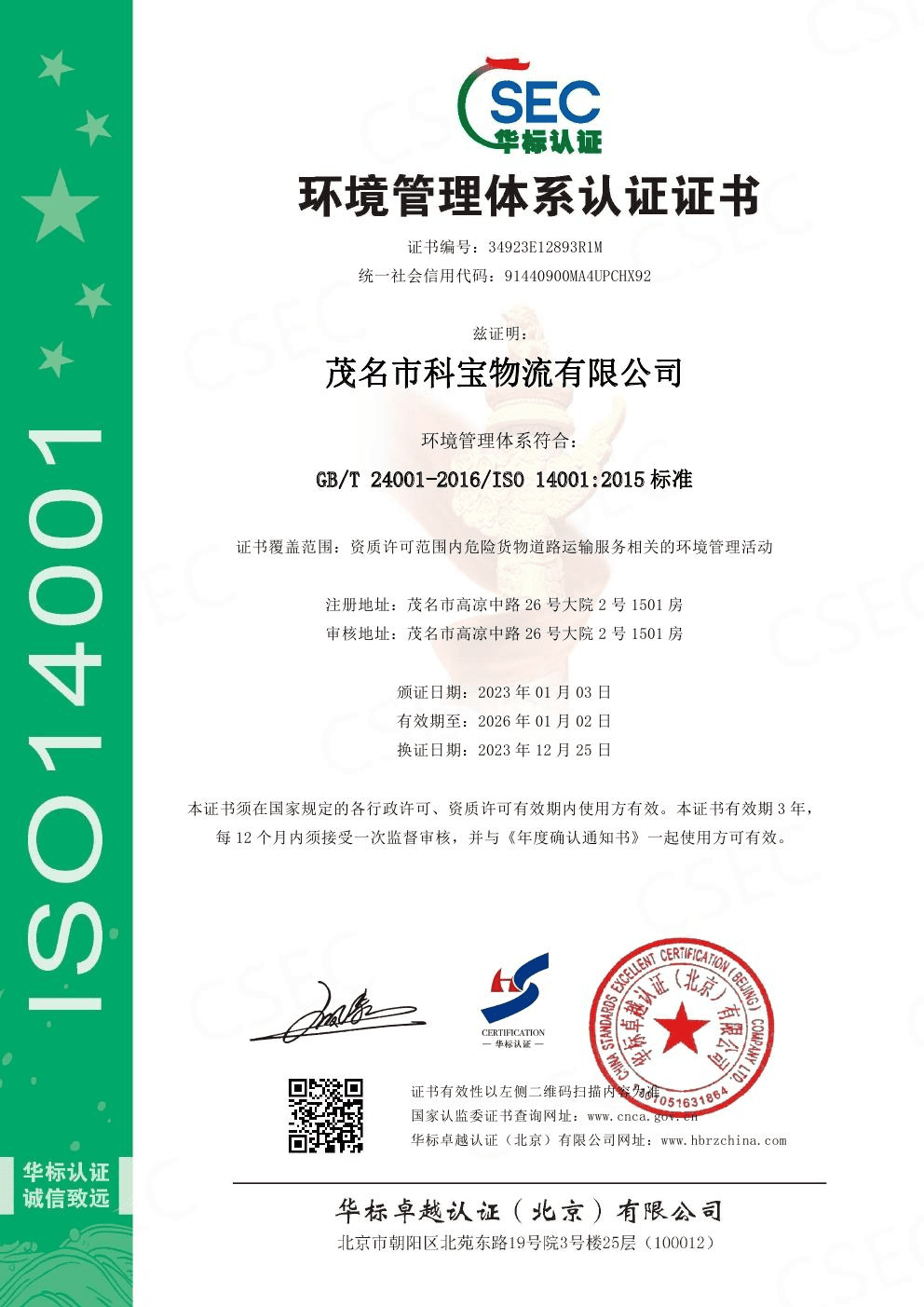 In January 2020, the company established ISO9001 quality management system, ISO45001 occupational health and safety management system, and ISO14001 environmental management system. In August 2020, the company obtained the third level certification for standardized construction of safety production in transportation enterprises and obtained the certificate. In 2024, the company was elected as a supervisory unit of the Maoming Dangerous Goods Transport Association. The company is equipped with an all-weather Beidou intelligent monitoring system to achieve visual tracking of the entire transportation process. Regularly conduct safety training and emergency drills for drivers and escorts, with a 100% certification rate.